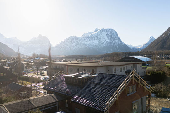 Innerst i en liten blindgate i Neshagaen på Åndalsnes med storslått utsikt til de mektige romsdalsfjella og med en flott skjult hage.